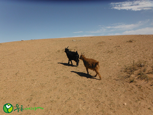 그래서 보통 양 사이에 염소를 몇마리만 넣어 키우는데,(양의 몰려다니는 습성은 양의 털 상품성을 떨어트리는데, 무리에 염소가 있으면 몰려다니는 습성이 사라진다고 하여 적당한 비율로 양과 염소를 함께 방목하여 키운다.) 요즘 염소 겨드랑이 털로 만드는 ‘캐시미어’가 몽골의 대표상품이 되면서, 자연히 방목되는 염소 비율도 자연히 늘어났다. 환경을 생각하면 나쁜 놈들인 염소이지만..