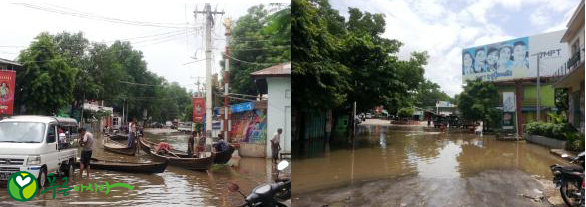 우기가 한창인 미얀마는 요즘 곳곳에 홍수 피해들이 속출하고 있답니다.