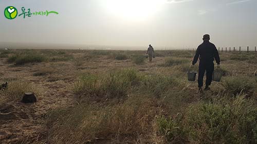 나무들이 뿌리내린 후로 확실히 해야 할 일들이 훨씬 더 많아졌고 머리 아픈 일들도 매일매일 생겨나고 있다. 하지만 지금부터의 일은 내가 그토록 기다려왔던 일이고 일의 주인공들인 나무가 눈앞에 있기 때문에 그저 막막하지만은 않다. 오히려 아직 자식 키우는 마음이 무엇인지는 모르지만 나무가 제발 잘 자라주기를 바라는 이 마음과 아주 조금은 비슷할 것 같다는 생각이 들면서 그 어느 때보다 큰 동기부여가 된다. 심은 지 얼마 되지도 않았지만 벌써 강한 나무와 약한 나무는 확연한 차이를 보인다. 강한 나무를 볼 땐 그저 고맙고 힘이 나지만 죽어가는 나무를 볼 때면 안타깝고 살아주길 바라는 마음이 절실해진다. 2017년의 나무를 모두 심은 지금부터는 나무에 물을 주는 일이 작업의 대부분이다. 넓고 넓은 조림지에 물을 주는 방법은 의외로 간단하고 놀라울 수 있는데 별 특별한 방법 없이 호스를 이용하거나 양손에 물을 가득 담은 양동이를 이용하여 모든 나무에 직접 물을 준다. 저수조에서 물을 받아 나무까지 걸어가는 모습을 보고 있으면 줄지어 움직이는 개미들의 모습과 비슷하다. 관수가 시작되었을 때도 모든 작업의 시작 때와 마찬가지로 이게 과연 잘 진행될 수 있을지에 대한 막막함과 불안함을 느꼈고 역시나 헛된 걱정이었음을 또 한 번 깨달았다. 티끌 모아 태산이라는 말이 무엇인지 알려주는 관수 작업은 나이게 이제 의심과 걱정은 조금 내려놔도 괜찮다는 메시지를 보내고 있다.