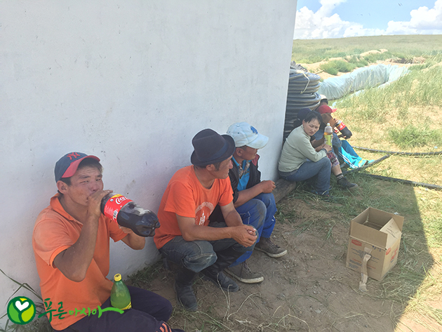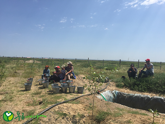 구덩이파기와 식재로 바쁜 3월부터 5월, 관수와 시비작업으로 바쁜6월부터 7월까지의 시간이 지나고 조금씩 한가해 지고 있다. 뙤약볕과 더위에 지치고 힘들지만 항상 웃으며 일하고 즐겁게 휴식을 취하는 우리 주민들이 너무나 좋고, 그들의 여유로움과 느긋함이 나 또한 여유롭게 만든다. 7월부터 비가 잘 내려줘서 관수의 부담도 많이 줄었고 그래서 우리 어기노르 주민들의 휴식시간도 많이 늘었다. 가끔은 1시간 일하고 10분을 쉬고, 30분을 일하고 30분을 쉬기도 한다. 많이 쉬고 대충대충 일을 하는 것처럼 보여도 어느새 오늘 할 일들을 모두 끝낸다. 처음에 나는 이해 할 수 없었다. 50분 수업에 10분 휴식이라는 틀에 갇혀 살았던 것이다. 여유롭게 또 자유롭게 일을 해도 결과는 같다. 오히려 억압적으로 짜여진 시간대로 일을 한다면 성과가 더 좋지 않을 수도 있다는 생각을 한다. 우리 주민들에게 여유와 즐거움을 배웠다. 나는 더 이상 주민들에게 일 하자 하지 않는다. 함께 즐긴다.
