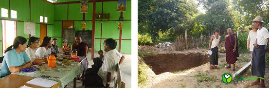 주민 참여 회의(왼쪽) / ?화장실 정화조 작업 점검(오른쪽)