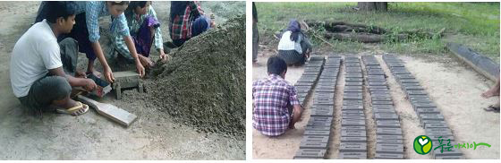 주민들의 벽돌 제작 및 건조 작업