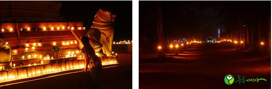 촛불 장식중인 파고다(왼쪽) / 거리를 밝힌 촛불(오른쪽)