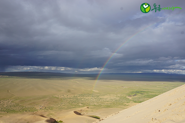 고비사막에 뜬 무지개. 사막 곳곳에 푸른빛이 보인다. ⓒ김명원 단원