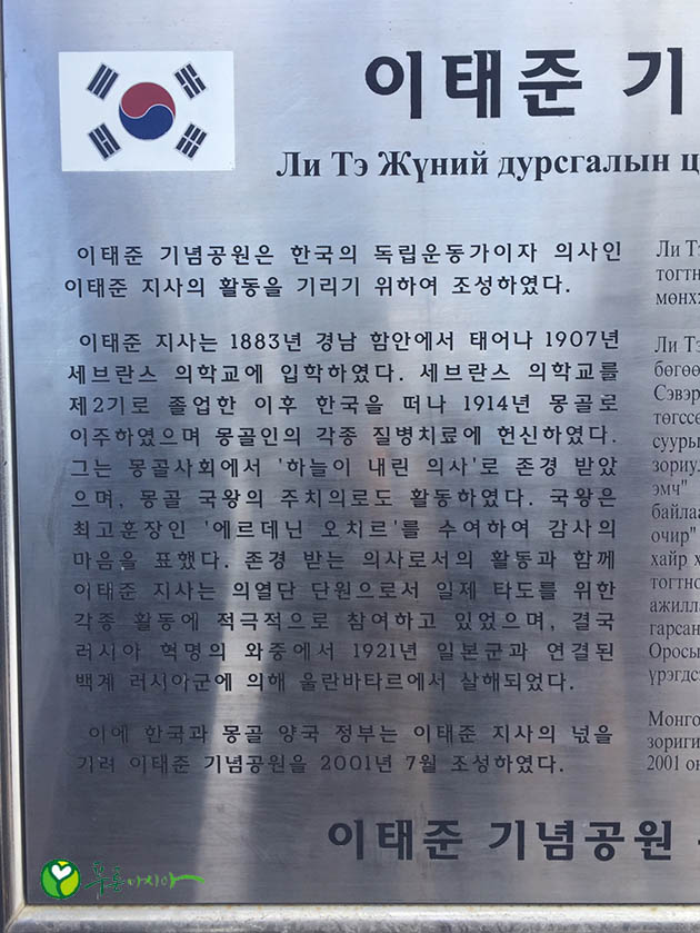 이곳에는 몽골에서 고마움을 표시하여 이태준 의사에 대한 기록들을 전시해 놓았다.