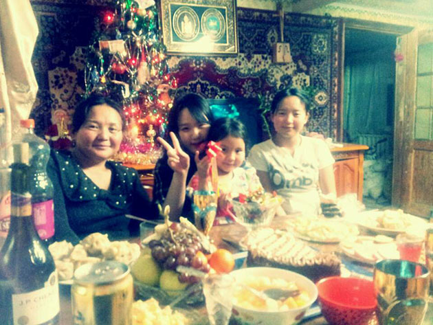 12월일 년의 마지막 달인만큼 12월은 특별하다. 아이들은 저마다 학교에서 신질을 맞아 공연을 한다. 나 또한 아이들이 신질을 기념해 노래를 하고 춤추는 것을 보았다. 자야의 신질 파티를 위해 머리와 화장을 해주기도 했다. 자야는 15살인데 학교에서 친구들과 선생님들과 음식 하나씩을 해가서 파티를 한다고 한다. 신질 당일, 어느 슈퍼를 가든 사람들이 가득하고 케익이 불티나게 팔린다. 슈퍼에서는 집집마다 보드카를 몇 병씩 쓸어 담아 간다. 31일 날은 어느 집이나 맛있는 음식과 술을 가득 준비하고 서로에게 새로 오는 해를 축하하고 기념한다. 서로 새해를 축하하느라 아주머니들 전화가 쉴 틈이 없었다. 아마 한국의 31일보다는 훨씬 더 특별한 의미를 가지는 듯했다. 이 날은 종미언니와 함께 바가노르에 와서 오그나 아주머니 댁과 나야 간사님 어머니 댁에 초대받아 고기, 각종 샐러드, 보쯔, 과일, 케익, 술 등을 실컷 먹었다. 생전 처음 소의 혀를 먹은 날이기도 하다. 그리고 12시가 되면 밖에서 폭죽이 터지고 집에서 샴페인을 터뜨리며 새해를 축하한다. 신질링 민드 후르기!