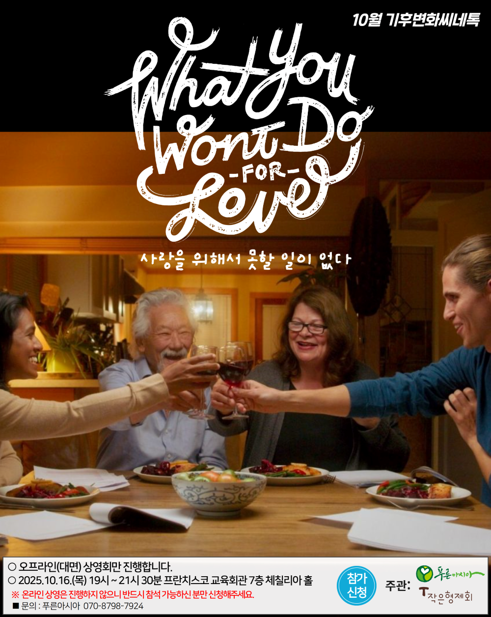 2025년 10월 기후변화씨네톡은 <사랑을 위해서 못할 일이 없다(What You Won’t Do for Love)>였습니다.