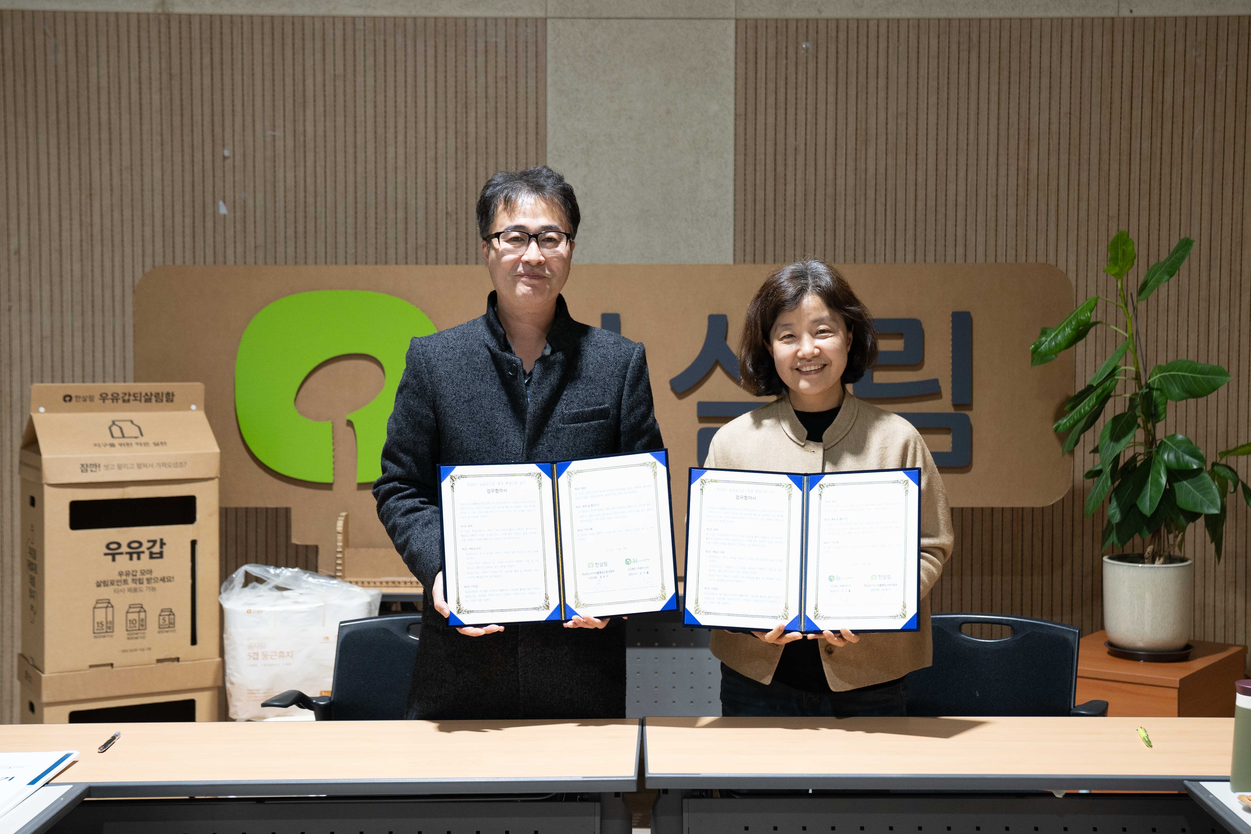 한살림소비자생활협동조합연합회(이후 한살림)와 기후위기 대응을 위한 자원순환 활동 및 생태복원 사업의 확대를 위해, 한살림 ‘숲살림기금’ 후원을 통해 몽골에 ‘한살림의 숲’을 조성하는 업무협약을 체결했습니다. 한살림은 조합원들을 대상으로 한 종이팩 회수 활동을 통해 마련되는 ‘숲살림기금’을 푸른아시아에 후원하고, 푸른아시아는 이를 몽골의 사막화 방지 및 생태 복원을 위한 ‘한살림의 숲’ 조성에 사용하게 되었습니다.