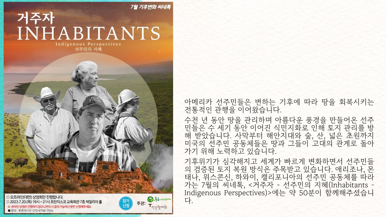 ‘기후변화씨네톡’은 사단법인 푸른아시아와 작은형제회(프란치스코회)JPIC가 함께 주관합니다.