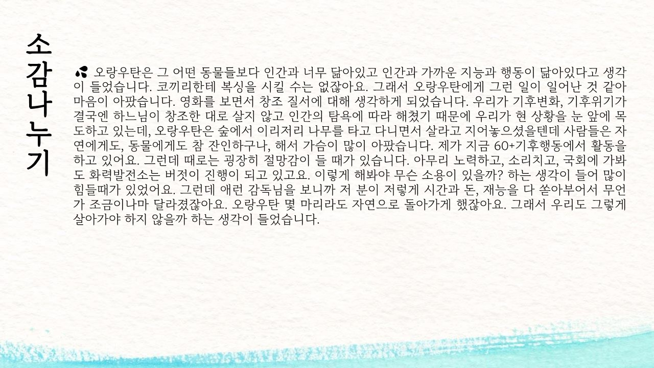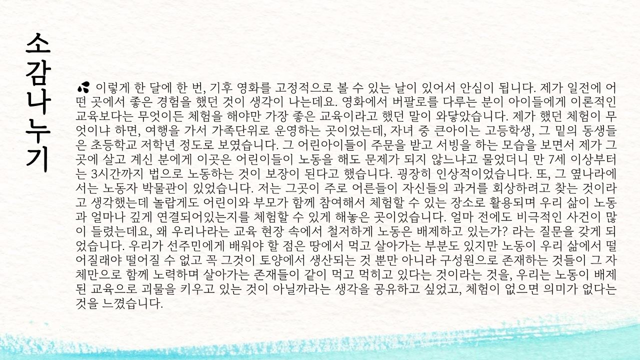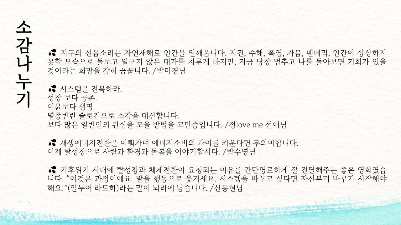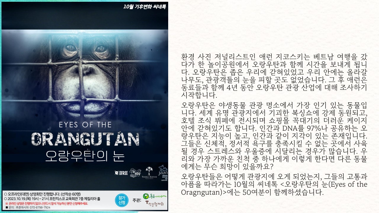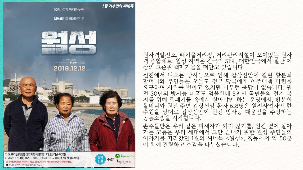 매월 세 번째 목요일에 기후위기&환경 관련 영화 상영회를 진행하고 있습니다.