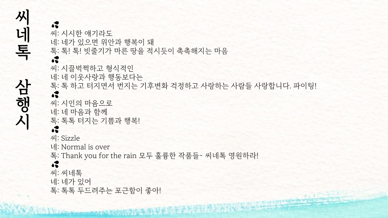 그 흐르듯 지나간 해에도 씨네톡을 통해 다른 세상들과 만나고 얽혔던 시간이 매달 쌓이고 있었네요.