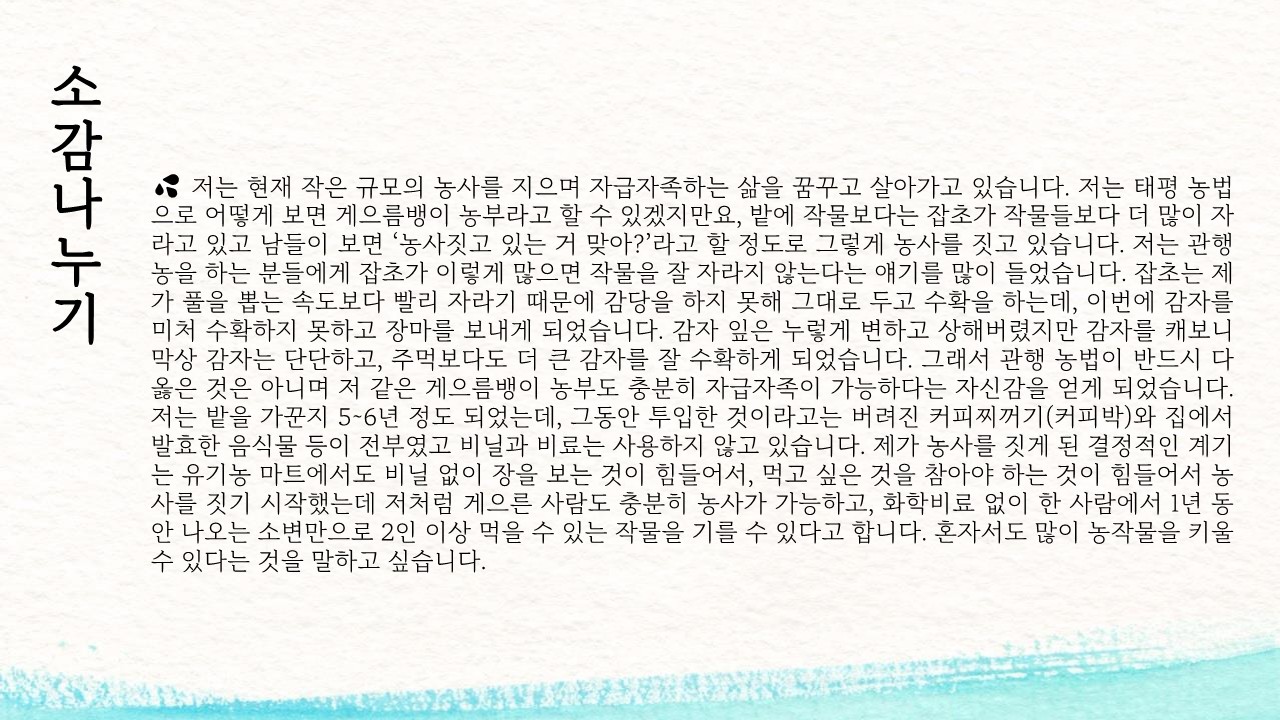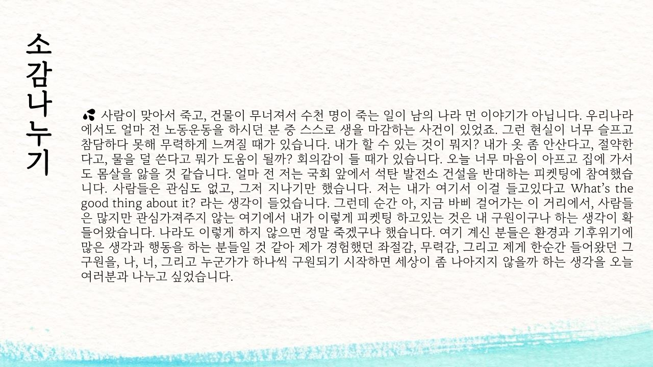 좋은 만남과 소통의 장을 열어가기 위해 계속 노력하겠습니다.