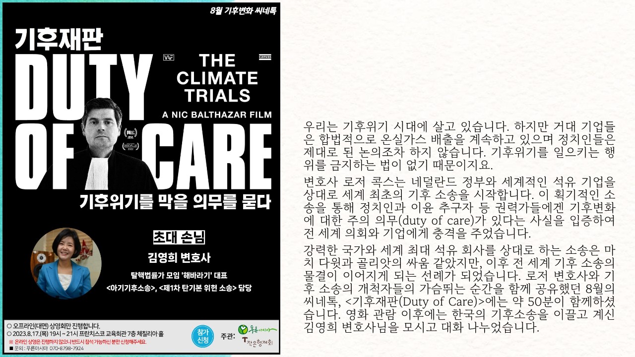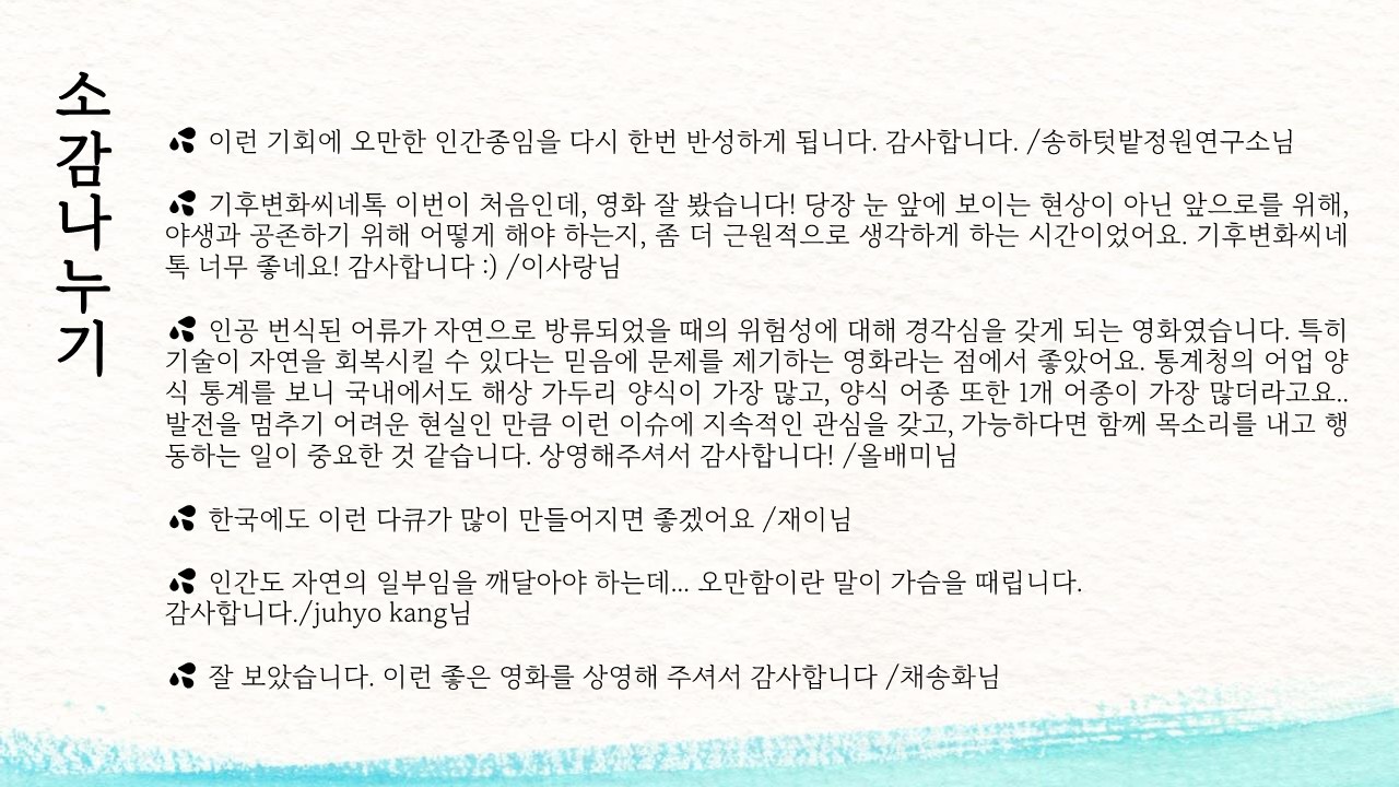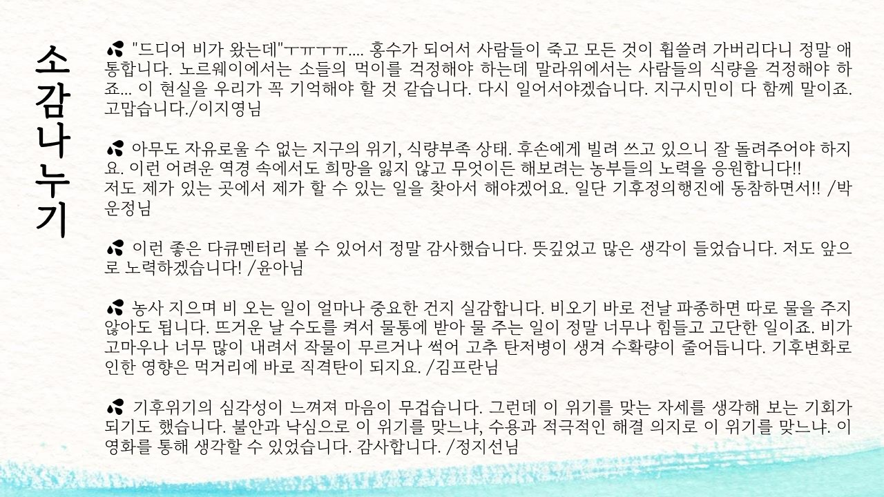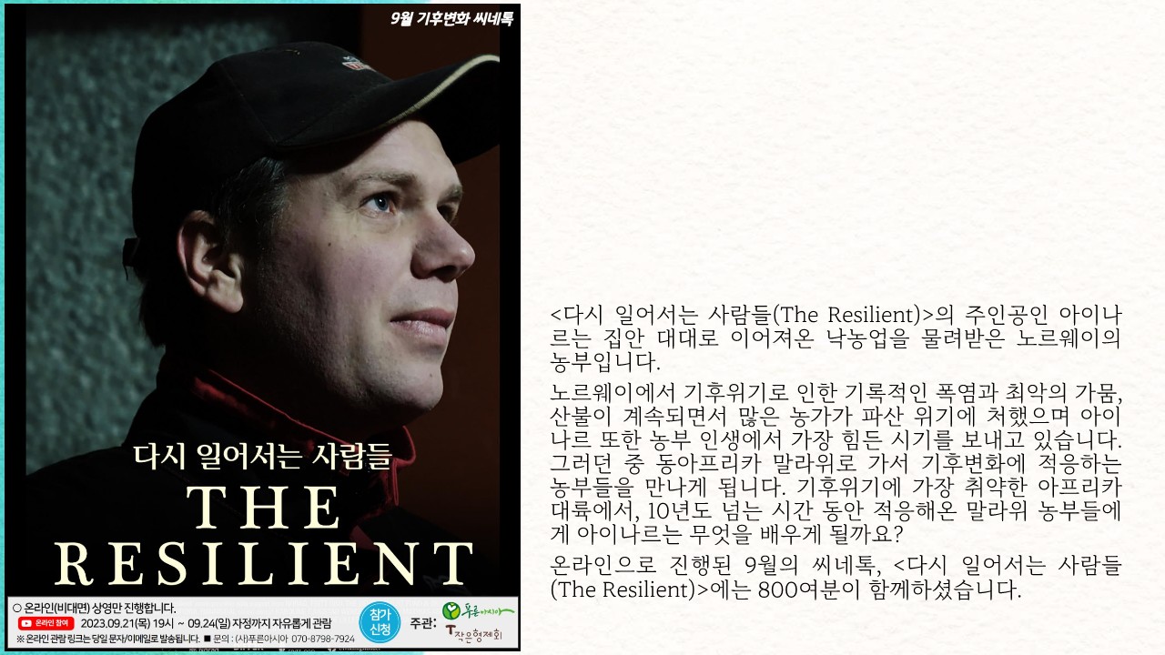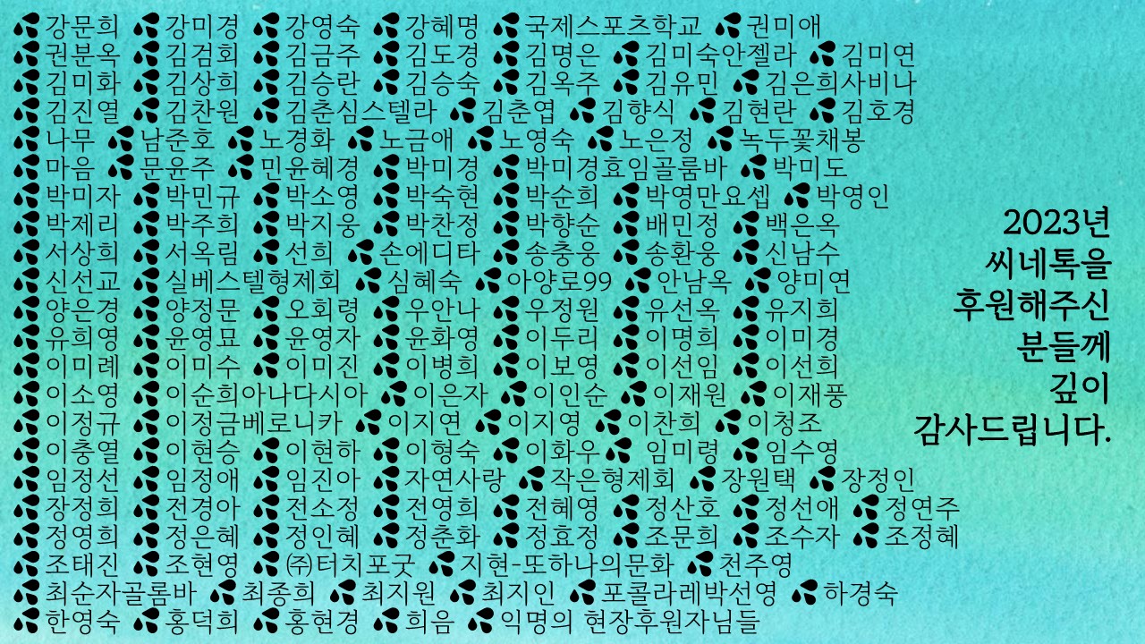 기후변화씨네톡이 무상으로 운영될 수 있는 것은 여러분의 후원 덕분입니다.