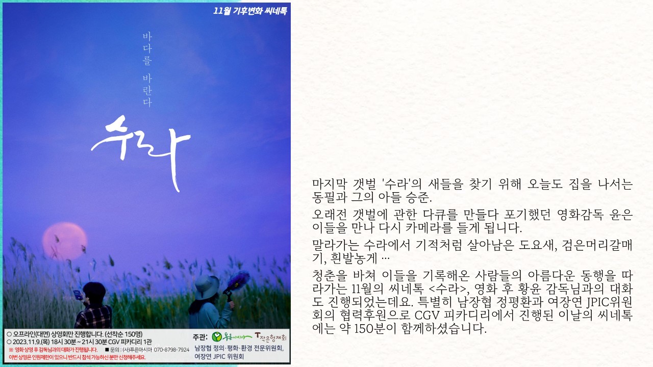 📢12월 기후변화씨네톡은 영화 상영 없이 2023년 상영작에 대한 회고로 대신합니다.