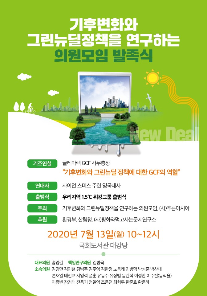 – 주최: 기후변화와 그린뉴딜정책을 연구하는 의원모임, (사)푸른아시아