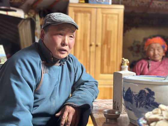 몽골 바양항가이에서 가축을 키우고 있는 유목민 어트건바타르가 기후변화의 영향에 대해 말하고 있다. 천권필 기자