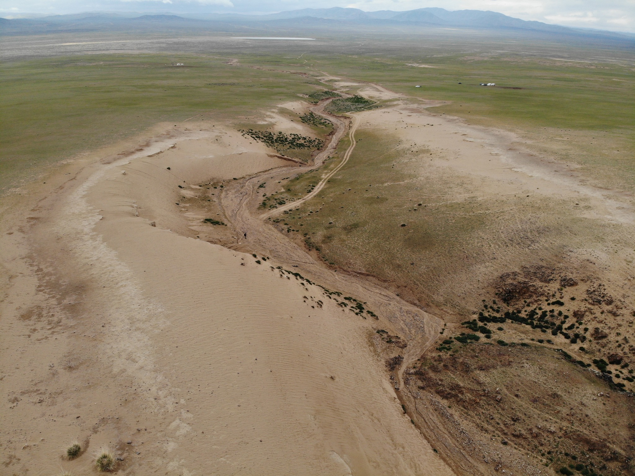 지난달 22일 게르(이동식 가옥)에서 만난 그는 사막으로 변한 땅을 가리키며 말했다. 풀을 찾아 헤매는 양·염소 떼를 지나 그가 알려준 곳에 도착하니 초원 한가운데 거대한 사구(모래 언덕)가 나타났다. 마을 주민은 “원래 작았는데 모래가 계속 쌓이면서 사막이 됐고, 최근엔 홍수까지 나면서 초원으로 쓸려 내려왔다”고 했다.