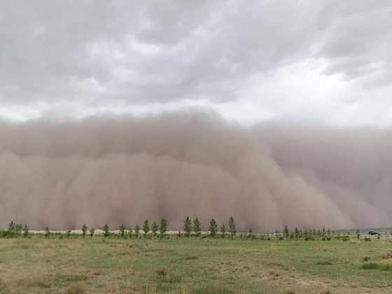 몽골 바양항가이 인근 지역에서 발생한 모래 폭풍이 초원을 덮치고 있다. 사진 몽골과학원 사막화연구소